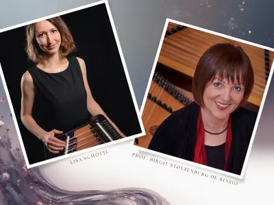 Schon seit über 20 Jahren spielen die Blockflötistin Maria Dorner-Hofmann und die Harfenistin Caroline Schmidt-Polex zusammen. Die beiden Eggenfeldenerinnen haben gemeinsam an der Universität Mozarteum studiert und waren seither immer auf der Suche nach spannender Literatur für ihre seltene Besetzung. „Von Taranteln, Hüten, grünen Wiesen und Papirosn – Durch traditionelle Musik inspirierte Kunstmusik aus verschiedensten Ecken Europas“ ist der Titel der musikalischen Reise, in der sich der musikantische Schwung und die Schönheit einfacher Melodien der Volksmusik mit höchster spieltechnischer Virtuosität verbinden. Dementsprechend stehen auf dem Programm Ohrwürmer wie die Tarantella italiana, Variationen über eine alpenländische Weise, Musik aus dem Balkan, aus Irland oder Dänemark sowie Werke von Ravel und Ibert. Ein Höhepunkt ist der Carnaval de Venise von Pièrre-Agricole Genin, das eine sehr bekannte Melodie in Variationen verarbeitet.